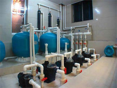 对游泳池循环水处理有两个关键处理环节,一是水质过滤,二是水质消毒。这两个过程在游泳池水处理过程中缺一不可。水质过滤是指游泳池水通过游泳池水处理设备的循环过滤作用使池水得到净化。