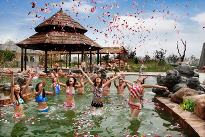 夏季天气炎热,人更容易感到疲惫,在热气缭绕的温泉中,舒心活络,放松身心,让烫烫的温泉水将一天的烦闷劳累全部浸掉泡走。