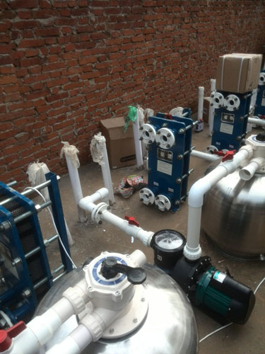 游泳池及水上乐园水过滤循环处理设备及游泳池加热设备安装现场:
